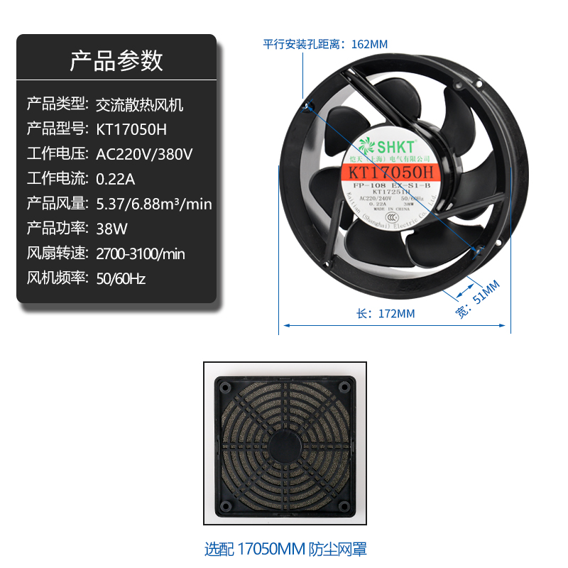 Round KT17050H 17251 50 FP-108EX-S1 axial flow fan 380 220V Shanghai Kaitian