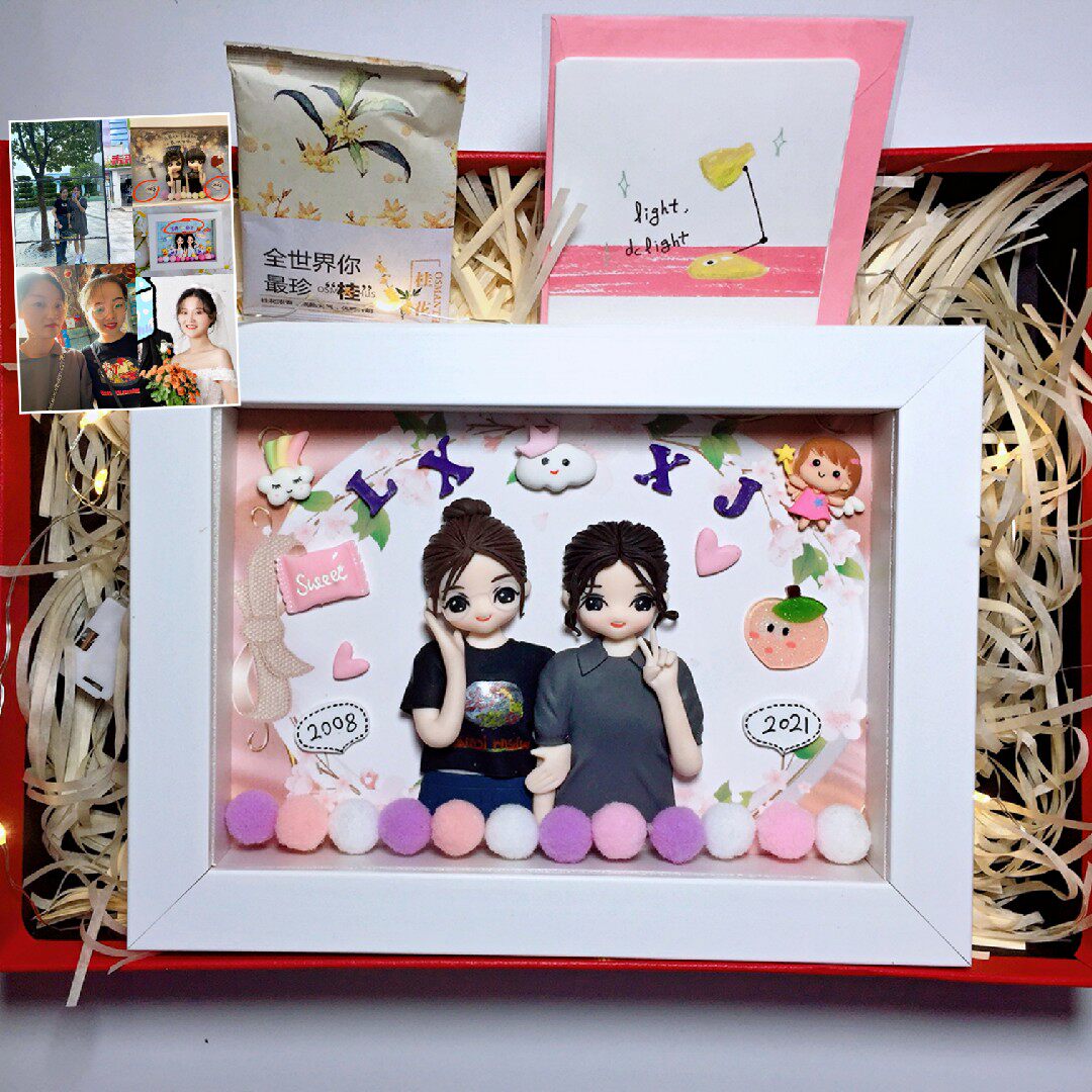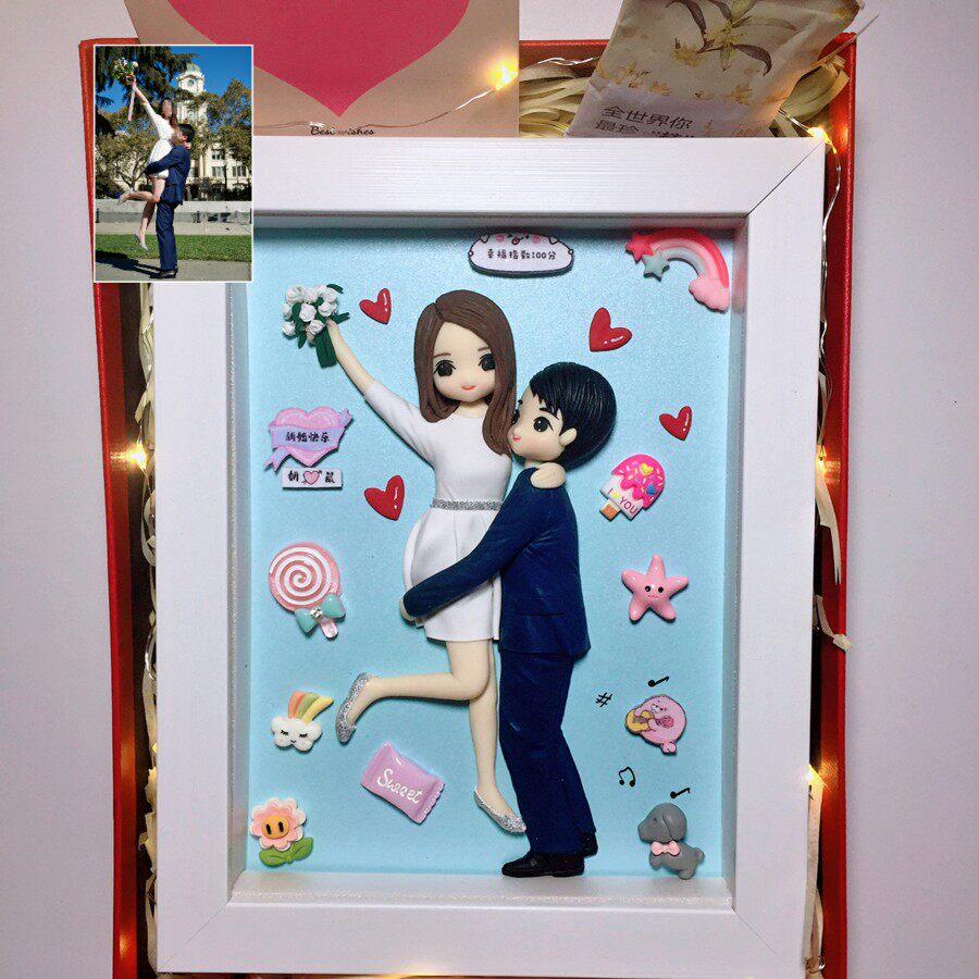 Soft pottery photo frame doll Hunan Huangjia anniversary graduate day girlfriend couple custom gift mud princess doll