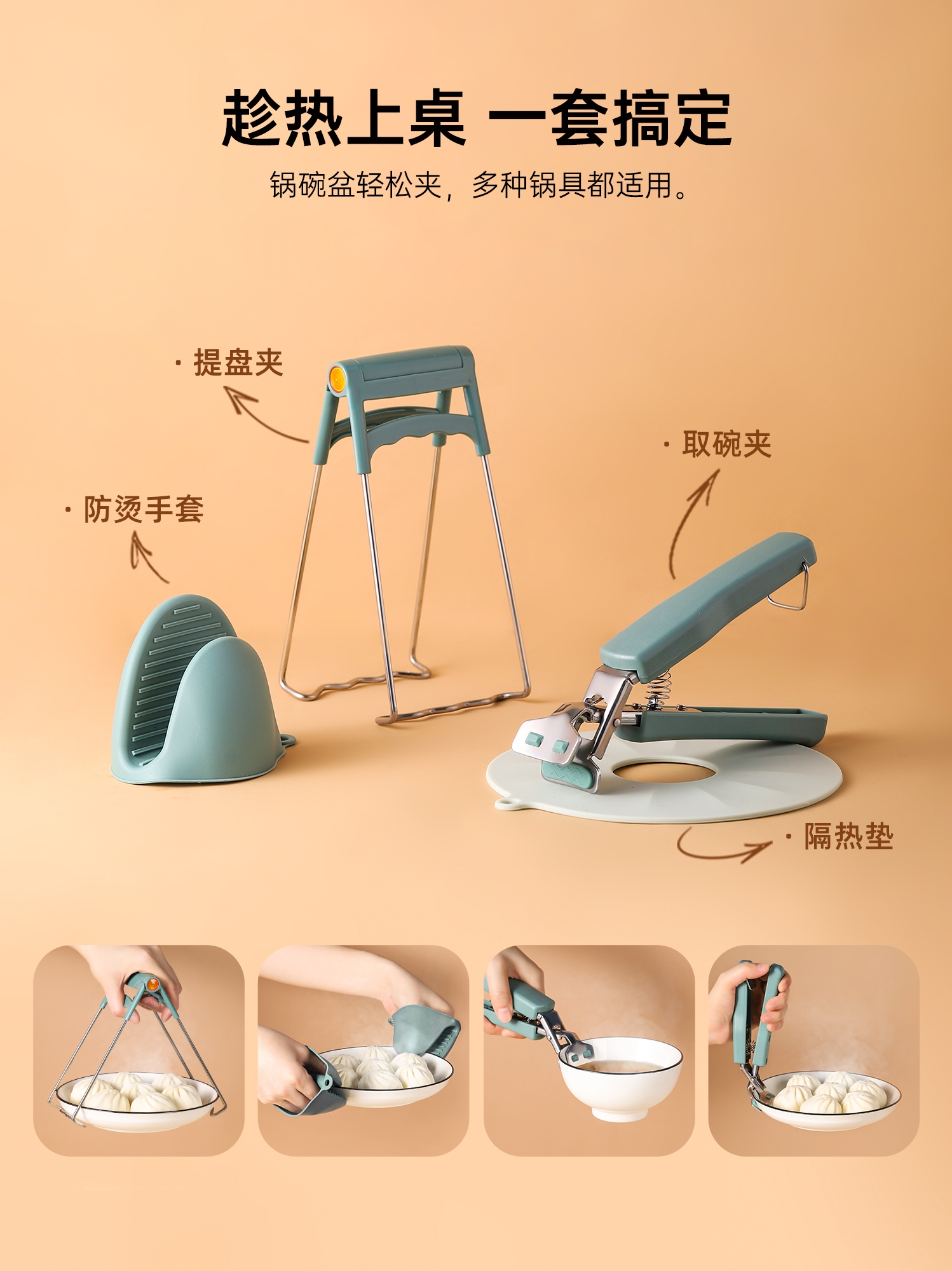 Anti-scald two-piece set-Sapphire Anti-scald plate clip-Sapphire blue Anti-scald bowl clip-Sapphire blue Anti-scald two-piece set-Azurite Anti-scald plate clip-Azurite Anti-scald bowl clip-Azurite Silicone hand clip pair-Sapphire blue