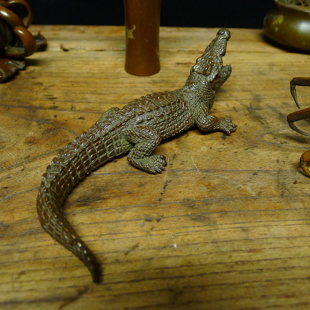 Su-worked solid copper crocodile trick with tea darling tea to play bronze worm bronze town Paper Town Landscape Ornament Factory Price
