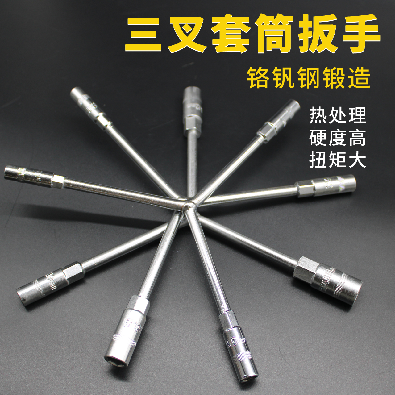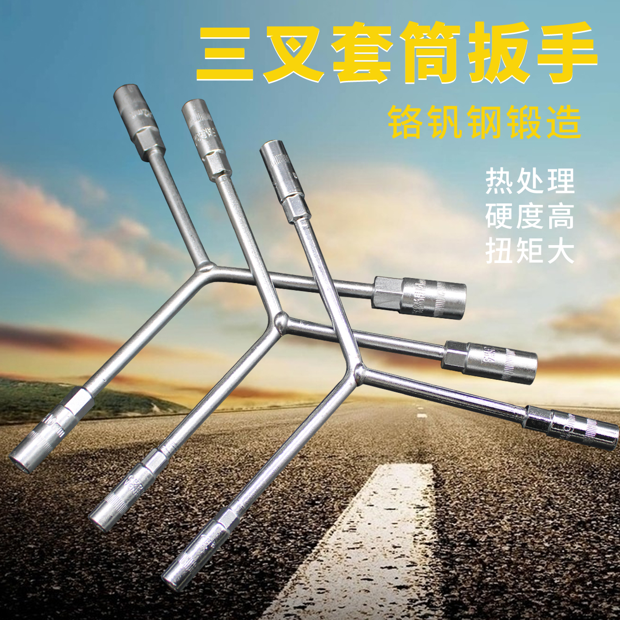 Triple-fork sleeve wrench lengthened Y-type multifunction locomotive tire triangular manual steam repair tool suit sleeve