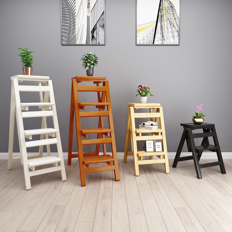 Staircase household folding multi-functional high-quality solid wood plastic balcony Flower rack bench bench kitchen high bench climb