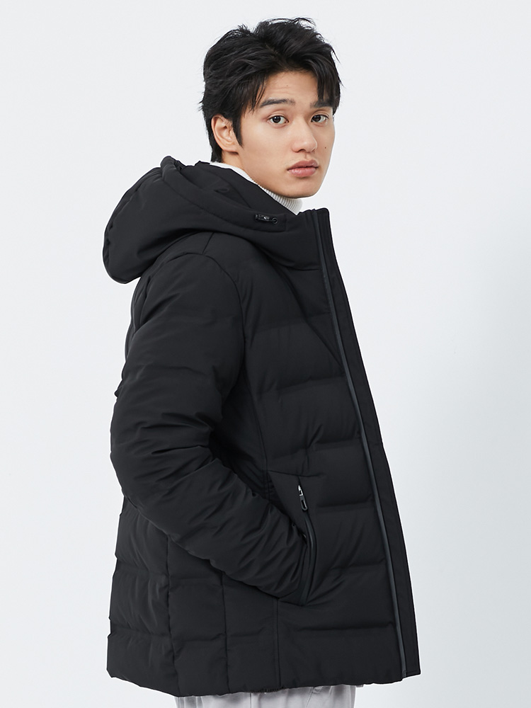 Snow medium flying 2021 autumn and winter new fashion minimalist movement Easy lap man style even cap draw rope short and warm down clothes