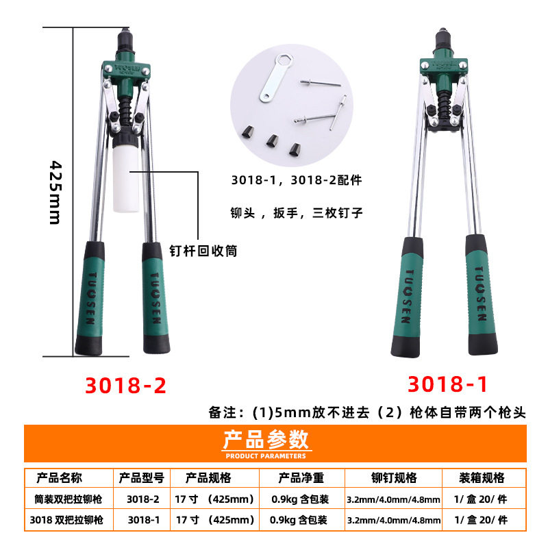 Trawson double take rivet gun suction core labor-saving pull cap gun door and window hinge rivet tool manually 17 inch riveter