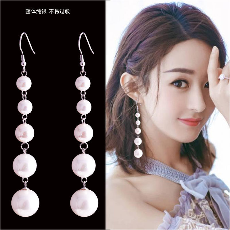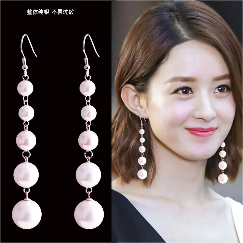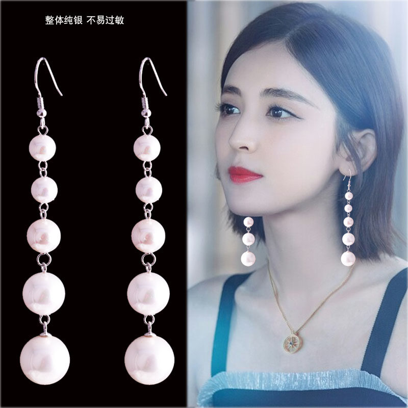 Earring 2022 new tide Korea temperament pure silver network red hundred personality high - sense pearl ear accessories female long version