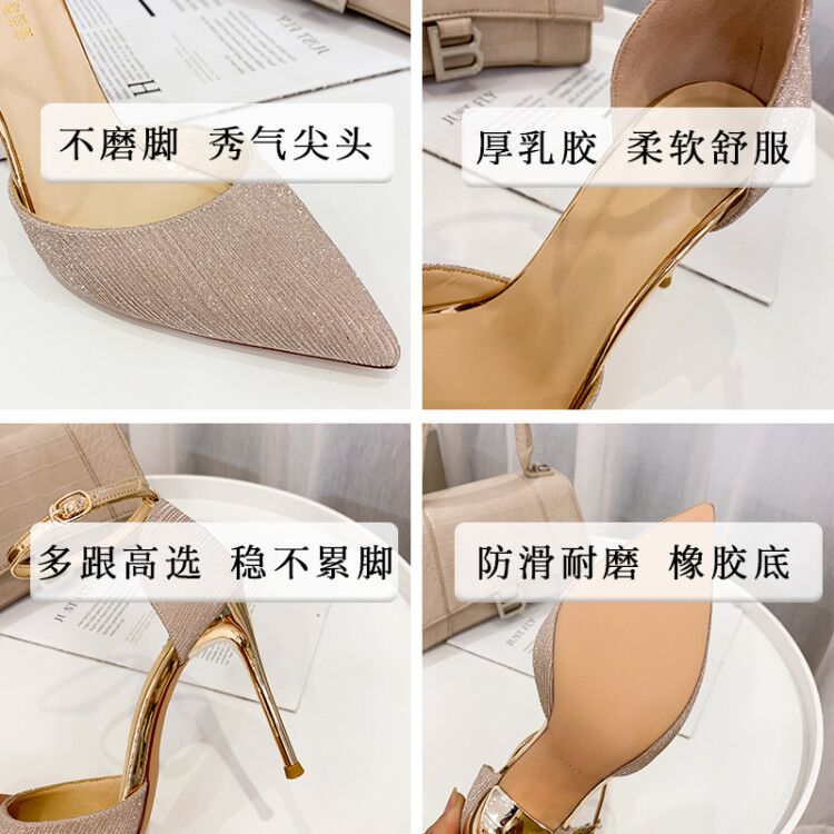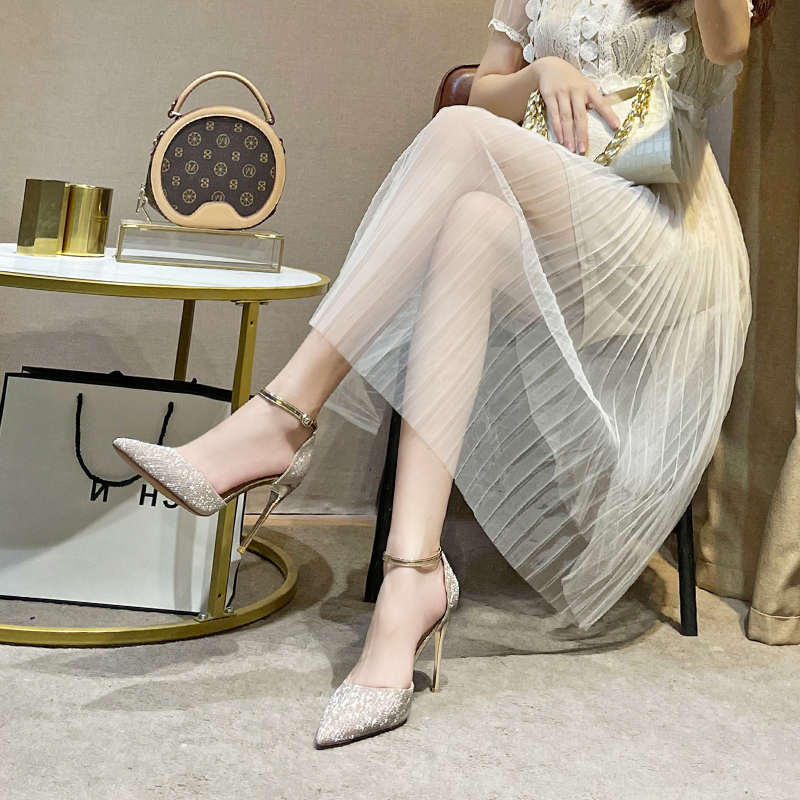 One word buckle high heels women's stiletto heels 2021 new spring and summer ins fairy net red design sense niche temperament