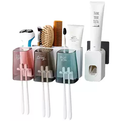 Powder room wall toothbrush holder non-perforated brush cup suction Wall set wall-mounted gargle tooth cylinder