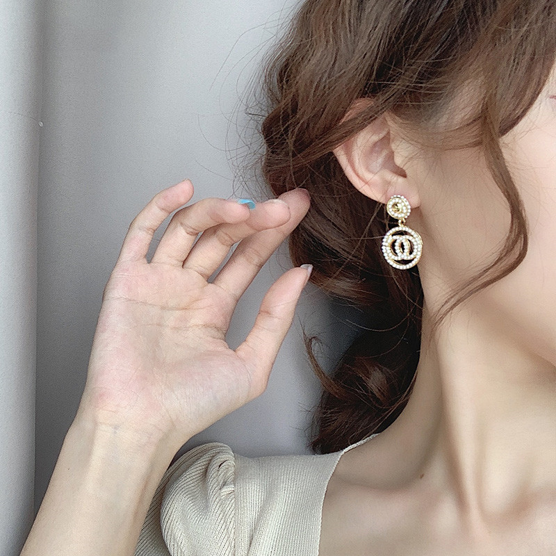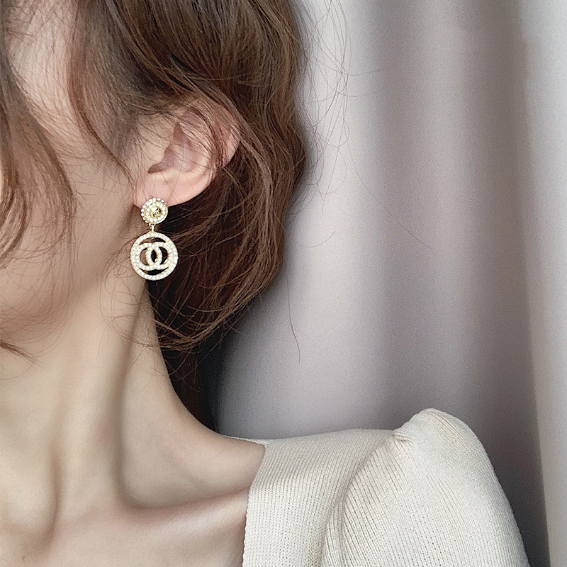 Pearl earrings small fragrance double C ear decoration pure silver 2022 new Korean temperament network red high cold and cool wind