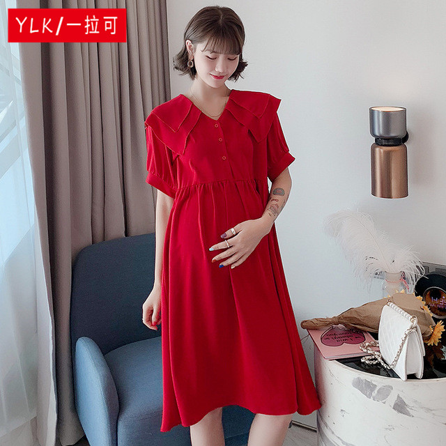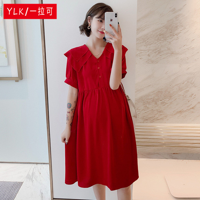 Red Ocean Dress Winter Gestation Woman Dress Pregnant Woman Toast Bridal Gown Wedding Gown Hood Tummy Back Door Red Dress Loot