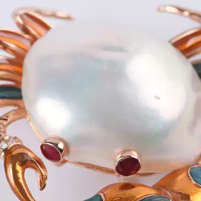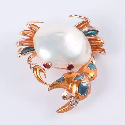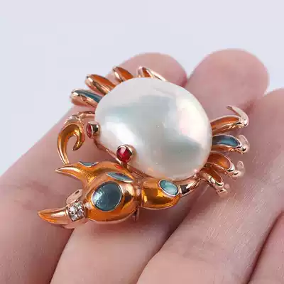 (Baroque shaped pearl) 18K gold pinching enamel process embedded Pearl crab brooch
