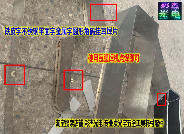 Caijie Optoelectronics Light-emitting word hanging piece iron letter stainless steel letter metal letter installation round corner code hanging ear