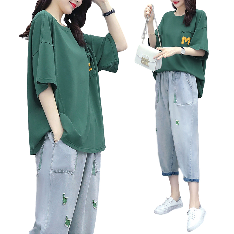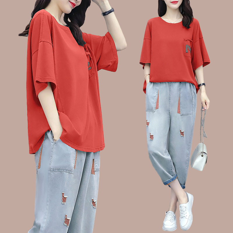 Red (pure cotton single T-shirt) green (pure cotton single T-shirt) grey (pure cotton single T-shirt) red jeans (single pants) green jeans (single pants) grey jeans (single pants)