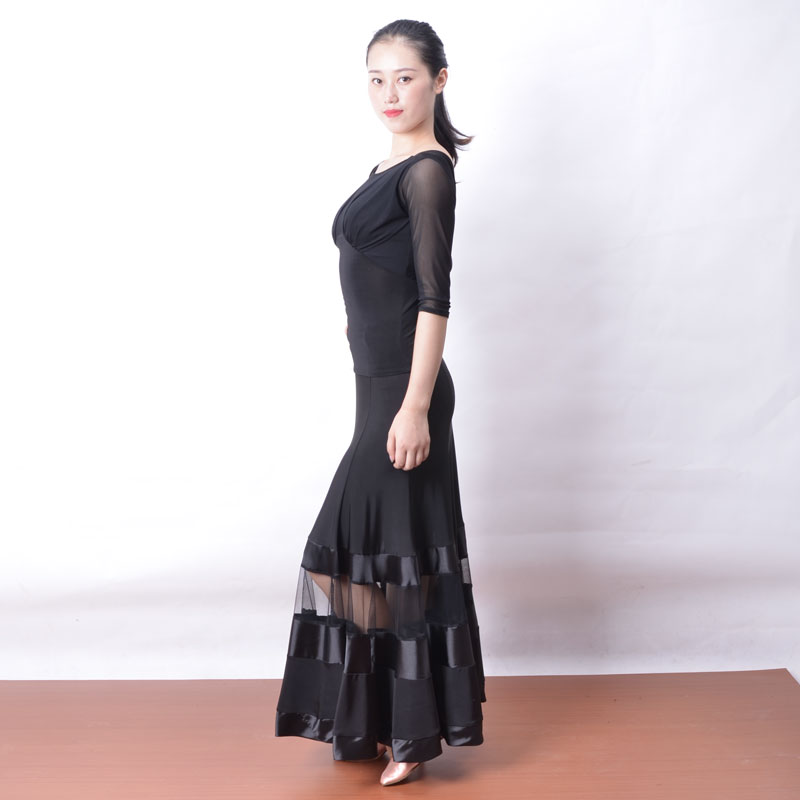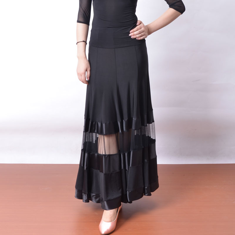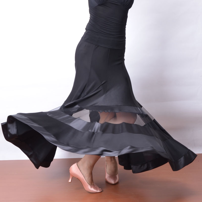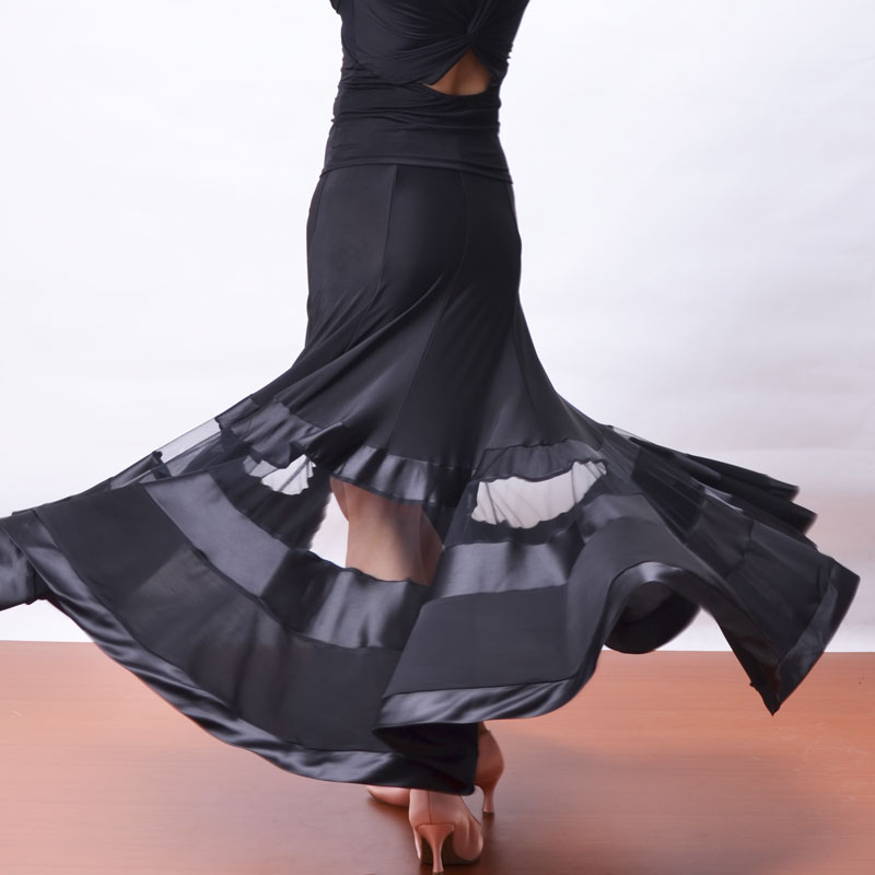 Exotic dance national standard dance modern dance eight-piece stitching hollow gauze satin edge practice performance skirt S13023