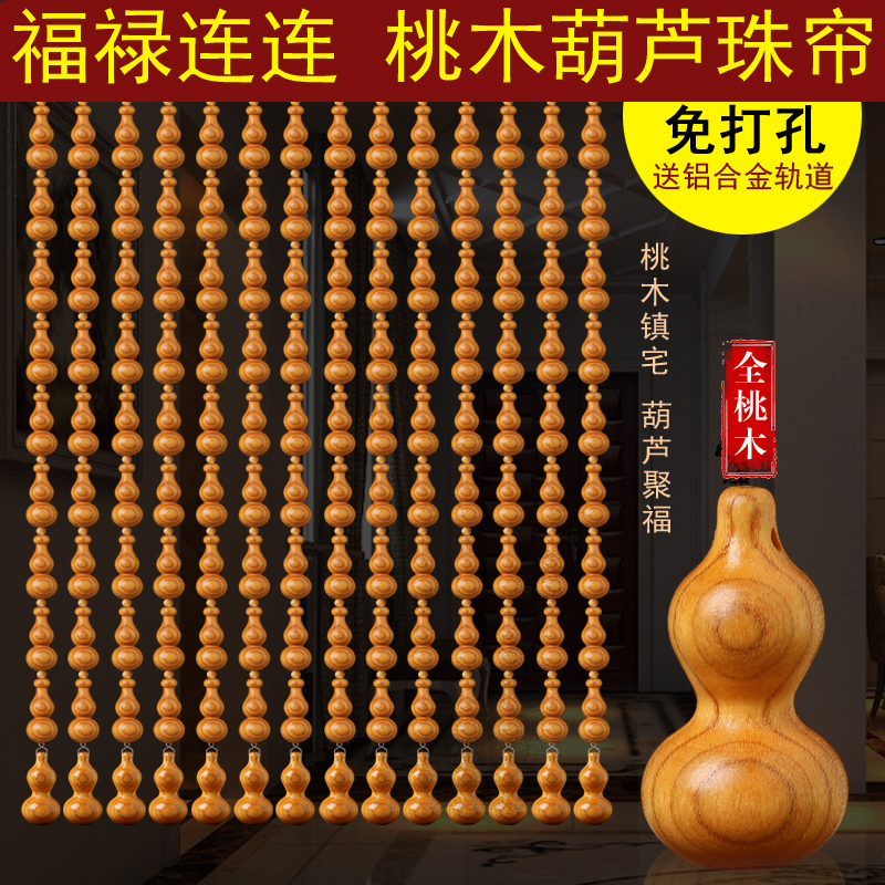 Full peach wood gourd bead curtain crystal partition living room bead door curtain home Fengshui curtain bathroom aisle free punching