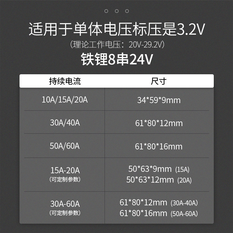 Iron Lithium 8 Strings 24V15A Same Mouth Equalized Iron Lithium 8 Strings 24V20A Co-Mouth Balanced Iron Lithium 8 Strings 24V30A Co-Mouth Balanced Iron Lithium 8 Strings 24V40A Co-Mouth Balanced Iron Lithium 8 strings