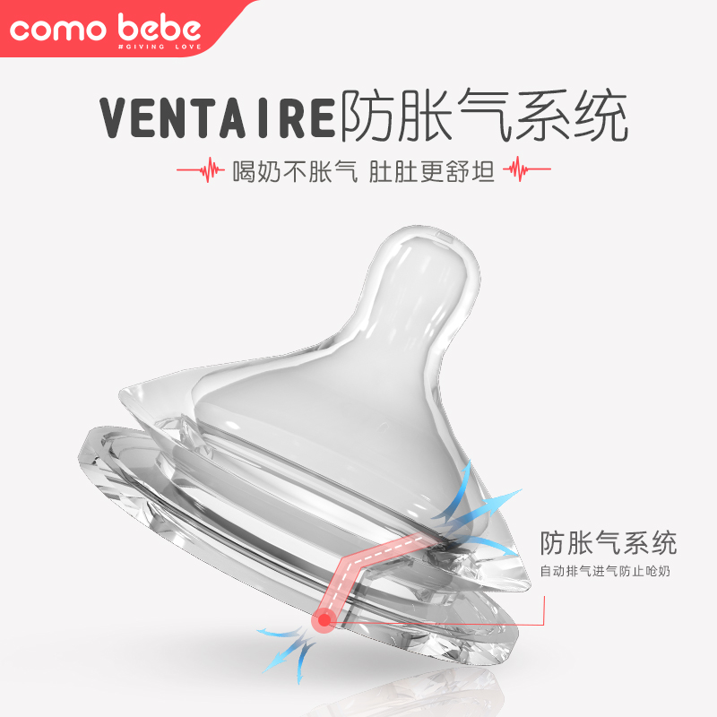 comobbe newborn baby large wide mouth nipple imported silicone gel material anti-flatbed gas nipple bottle universal