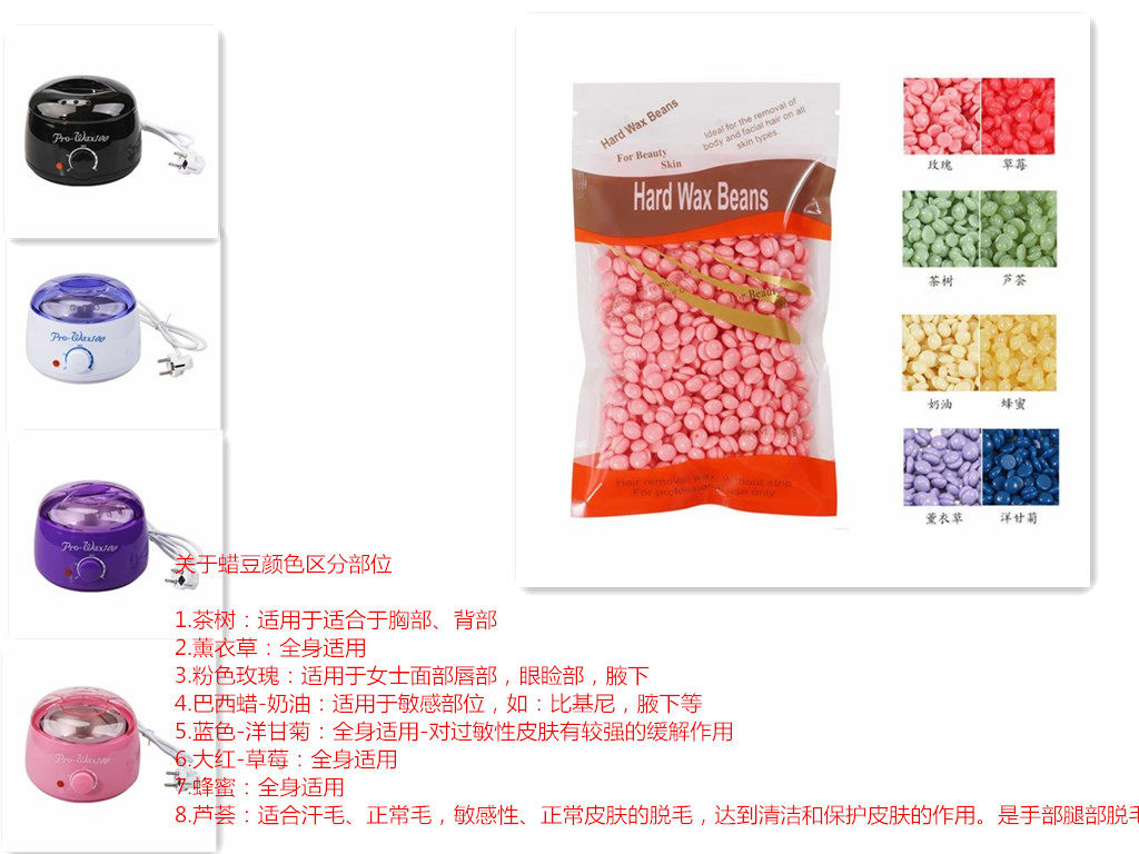 Waxing rod 50 black melting wax machine pink melting wax machine purple melting wax machine 8 packs 100g wax beans total 800 gr 10 wood chips 3 packs 100 gr wax bean color remarks 10
