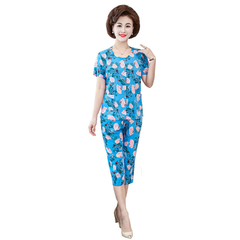 Cotton silk pajamas women's two-piece cardigan middle-aged and elderly cotton-making mother summer thin outer wear short-sleeved cotton silk suit