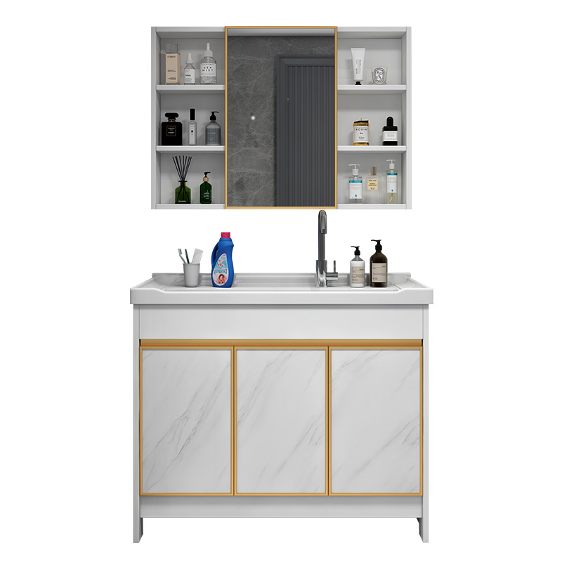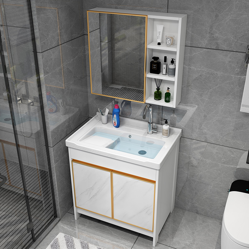 Space aluminum wash wardrobe balcony laundry basin ceramic sink floor type combination cabinet with washboard bathroom cabinet