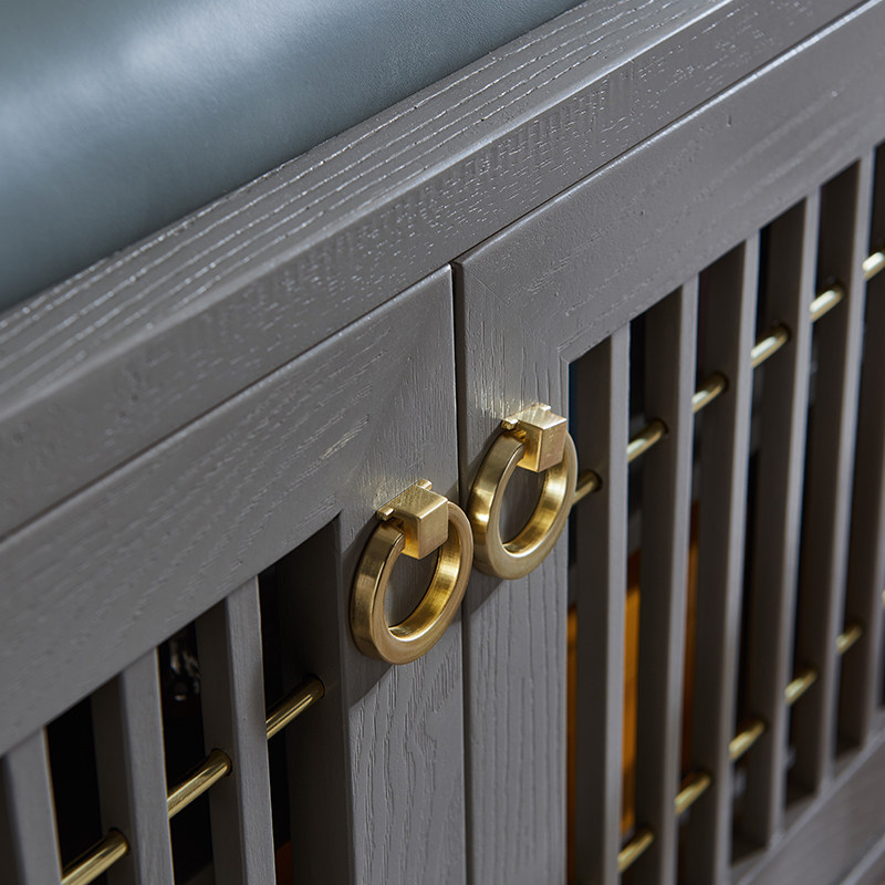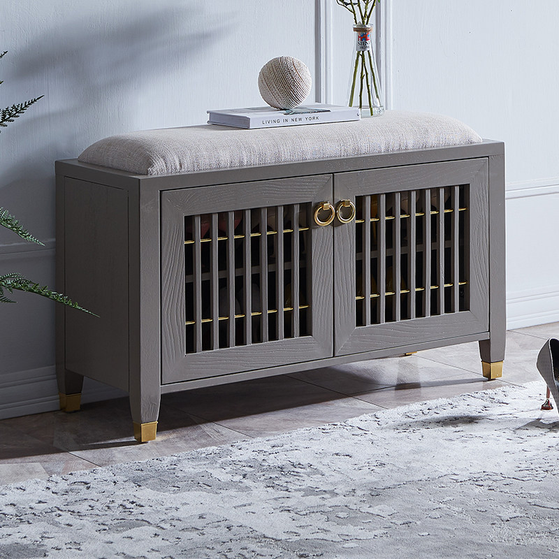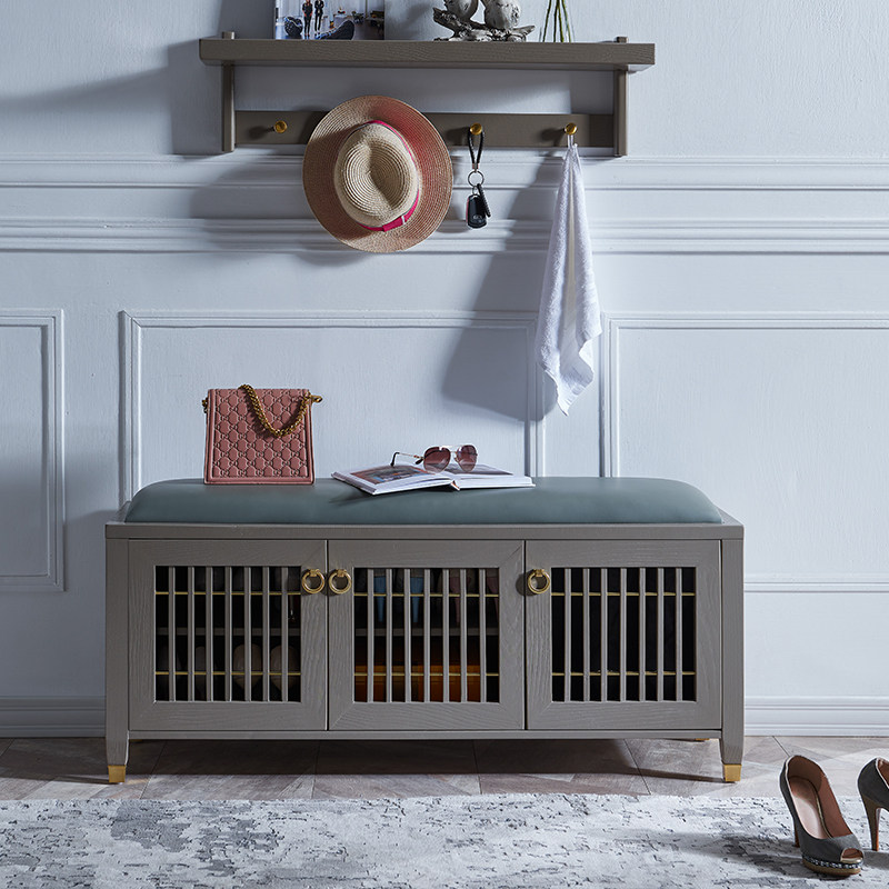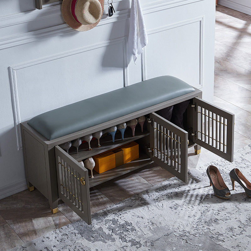 Krandi light luxury changing shoe stool shoe cabinet home door can sit on leather breathable dustproof multi-functional solid wood porch stool