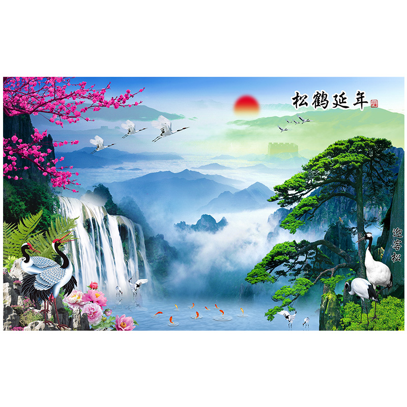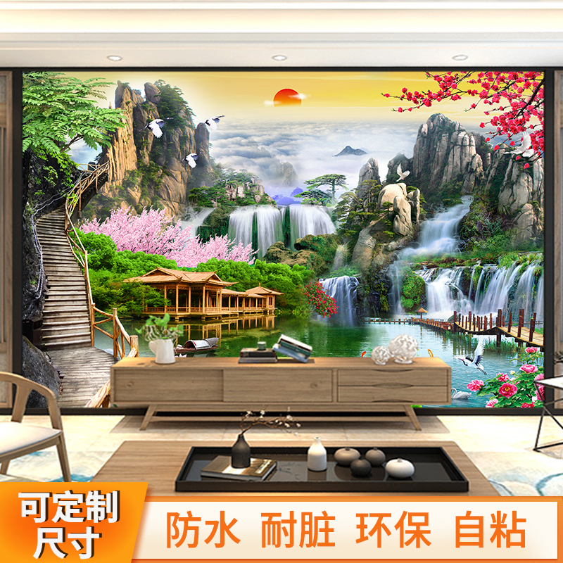 Wallpaper Self-adhesive Zhongtang landscape painting Living room Book room Office Decorative Wall Stickler sticker Chinese painting wallpaper