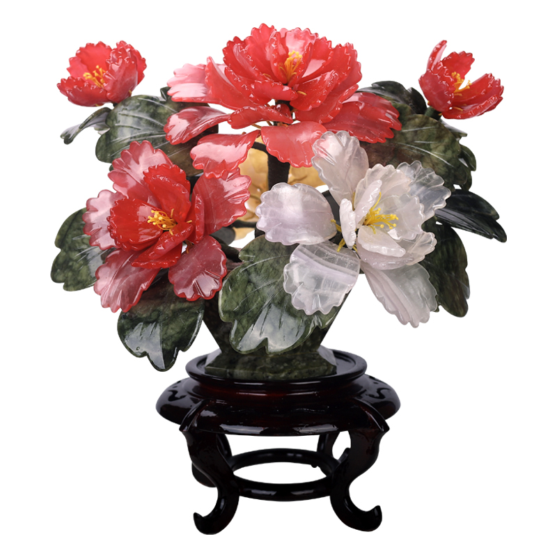 Old Beijing Series Natural Jade Pan View Peony Flowers Living-room Home Residence Ornament Jingtai Blue Creative Handicraft Swing Decoration