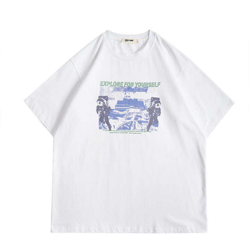 Jenny NASA astronaut printed white T-shirt female short sleeve 2022 new summer loose display slim blouse