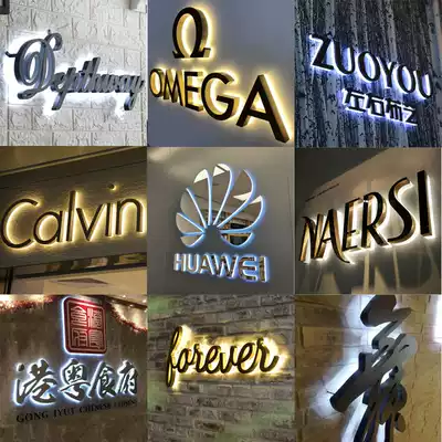 Stainless steel titanium alloy brushed back luminous character custom door sign outdoor mini word plating word iron sheet paint word