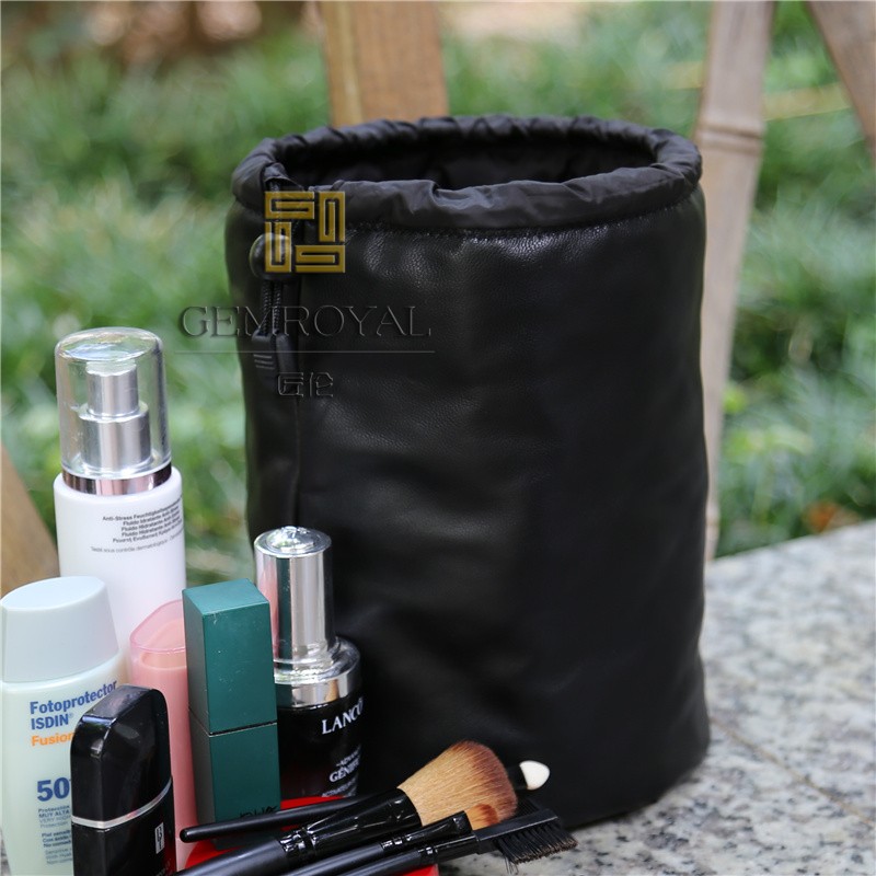 Female Net Red Genuine Leather Makeup Bag Large Capacity Cosmetic Sheepskin Cashier Bag Portable Small Number Washing Bag Bucket Bag