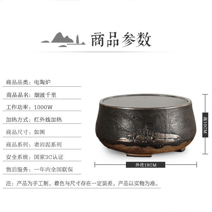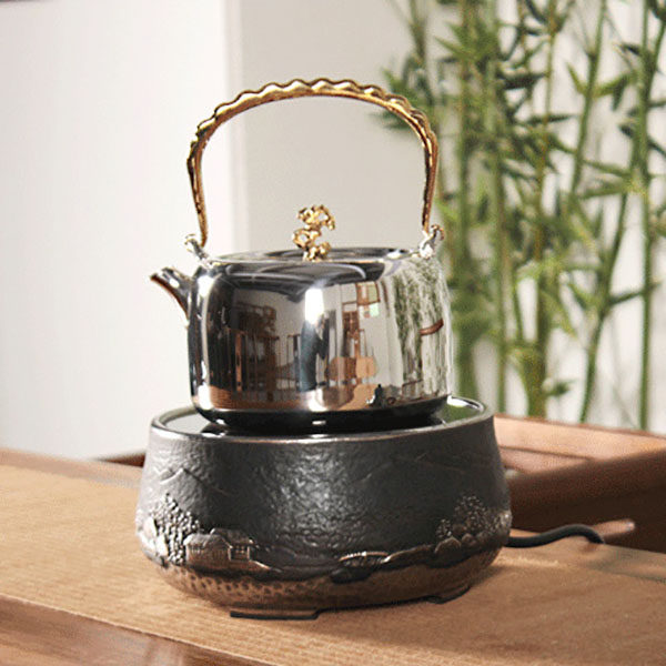 Black Crystal Furnace Home Cooking Tea Stove Silent Iron Pot Silver Pot Burning Water Stove Cooking Tea Instrumental Iron Clad Silver Series Electric Heat Light Wave Oven
