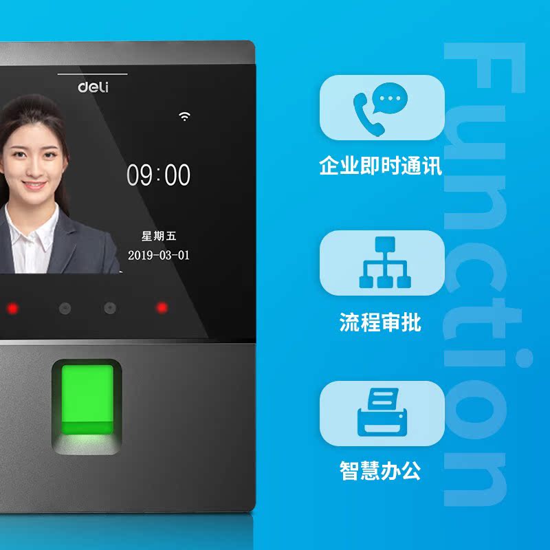 Deli D3 Intelligent Cloud Face Fingerprint Recognition Time Attendance Machine Swipe Face Punch Card Machine Face Recognition Time Attendance Machine Punch Card Machine Network Intelligent Time Attendance Machine Connect Mobile App to Check Attendance Anytime Anywhere