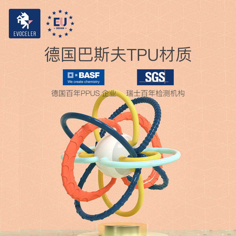 British evoceler Manhattan hand grab ball toothpack baby toy grip training baby grip rattle biteable