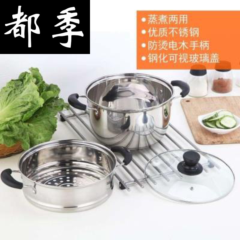 Steaming grid outdoor cooking pot small anti-scalding white steel stainless steel steamer extra thick milk pot seafood with lid thick bottom