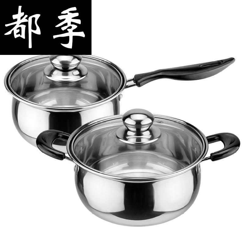 Porridge Stainless Steel Milk Pot Porridge Home Soup Pot Small Milk Pot Stew Noodles Flat Bottom Small Round Pot Steamed Mini Rice