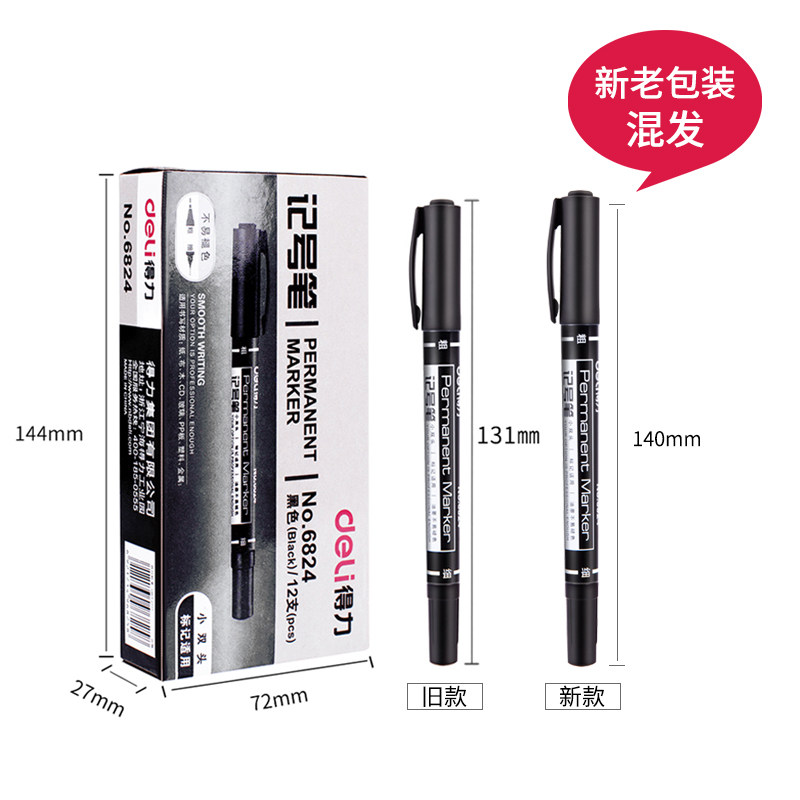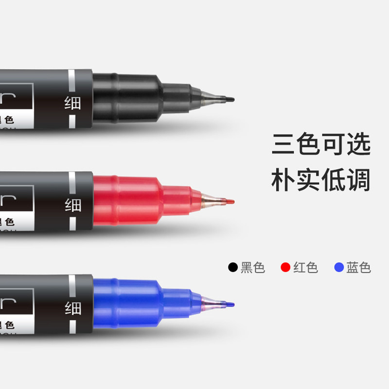 Able stationery 6824 Number of notes pen black small double head Thickness Oily Fine Arts Hook Pen Blue Red Color Dress CD Optical Pen Mark Pen Writing Tool-Taobao
