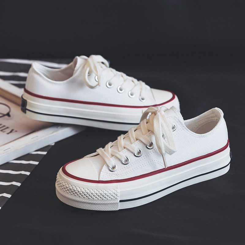 Thick-soled heightened canvas shoes women's 2022 new autumn thin section low-top all-match student breathable whiteboard shoes