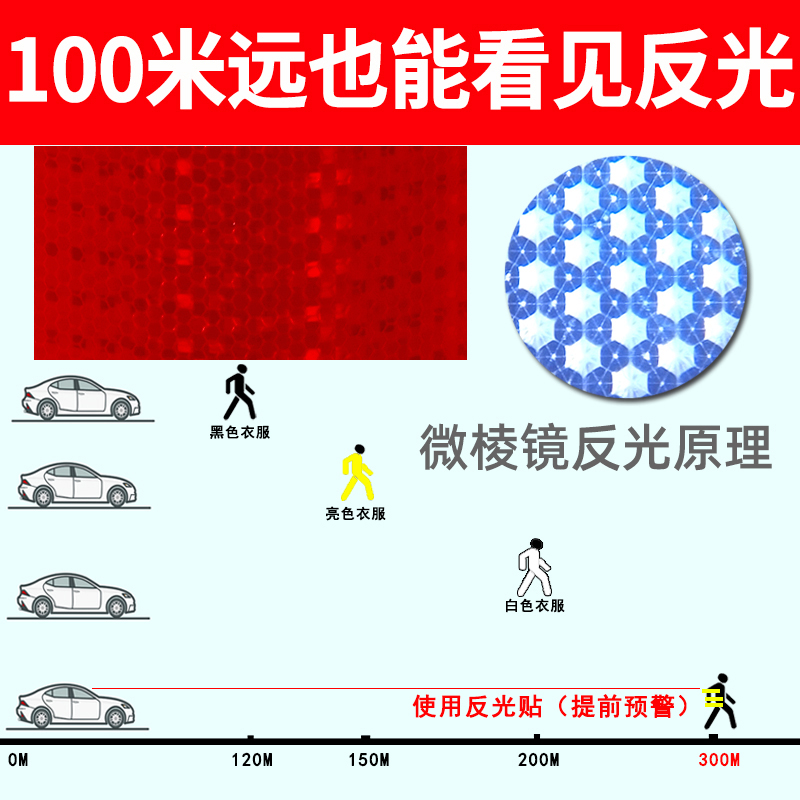 5cm Car Reflective Patch 10cm Reflective Strips Caution Post Night Crash-proof Reflective Film Waterproof luminous sticker paper red