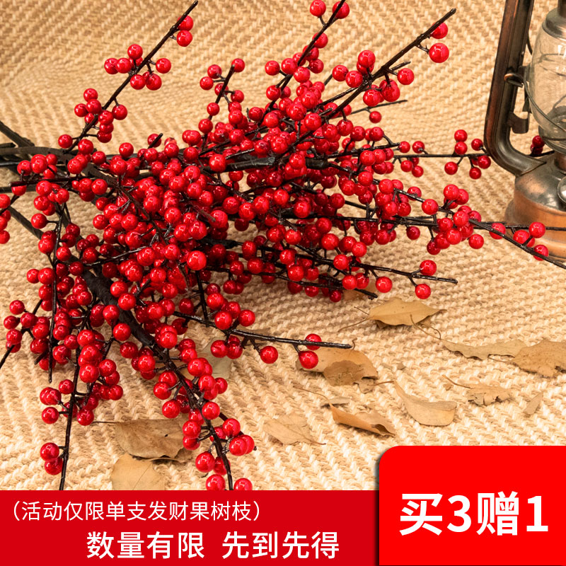 Red Hair Chaefruit Emulated Flower Pendulum Pieces Living Room Lucky Fruits North American Winter Green Red Berries Red Fruits Red Fruits Chinese New Year Decorations Flower Arrangements