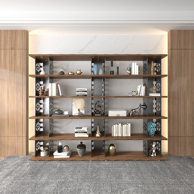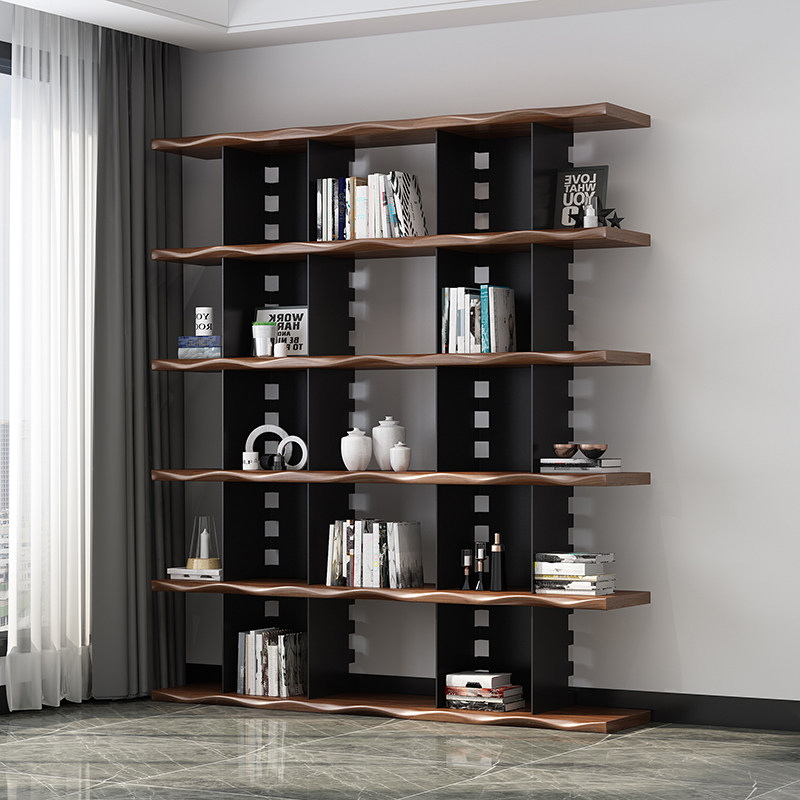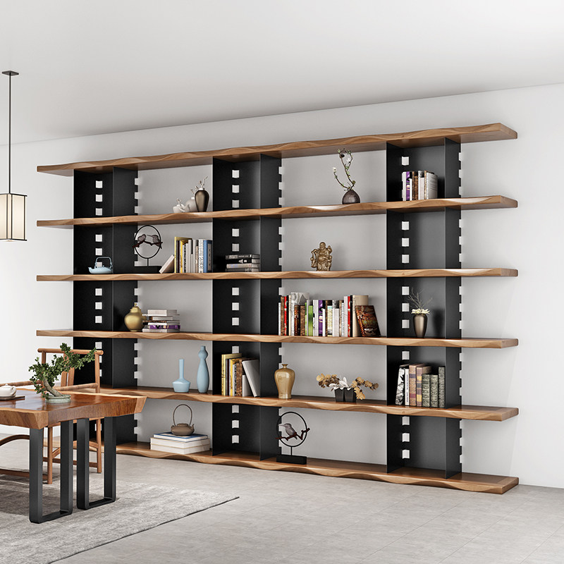 Nordic wrought iron rack floor-to-ceiling bookcase retro solid wood bookshelf living room office industrial style multi-layer rack