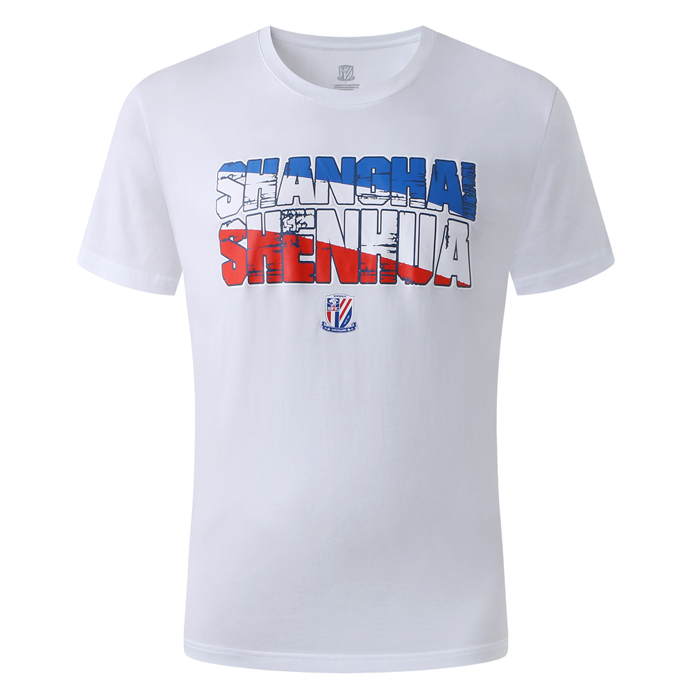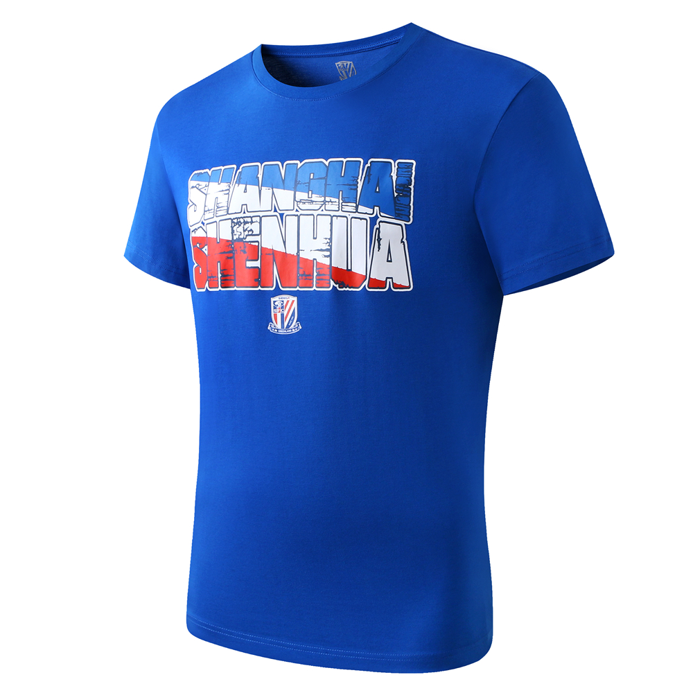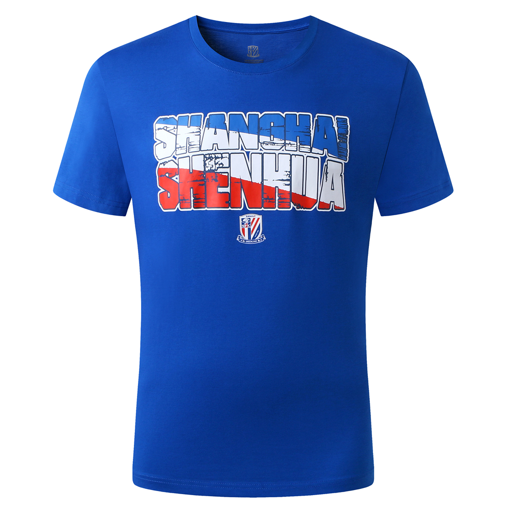 Officially authorized surrounding - Shanghai Shenhua letter summer blue white T - shirt couples culture shirt
