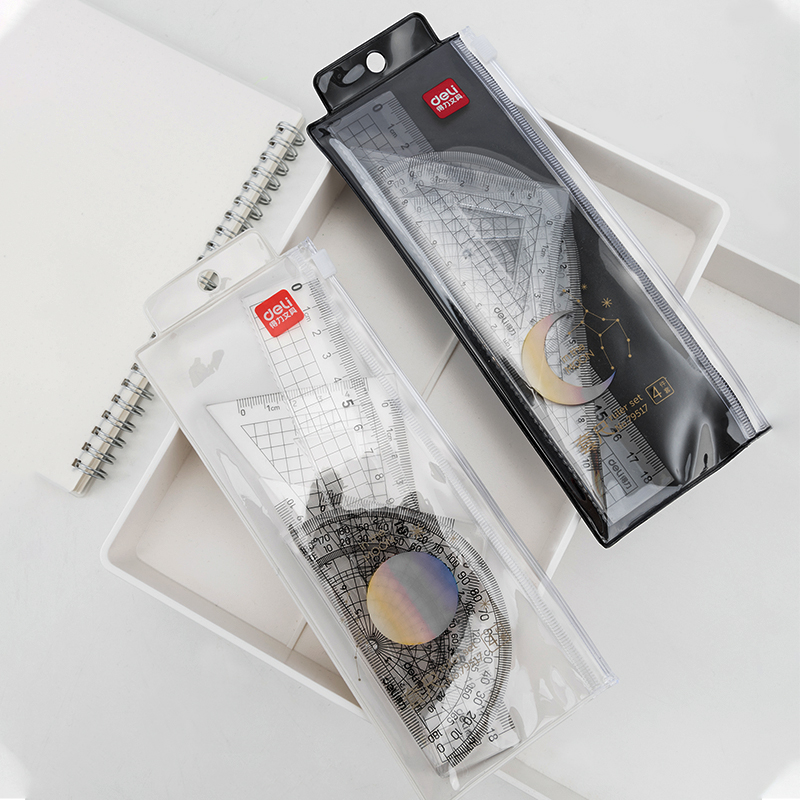Able 79517 Student set ruler ruler Ruler Protractor RULER PROTRACTOR KIT THICKENED TRANSPARENT PS MATERIAL CHILDREN MULTIFUNCTION SLEEVE RULER-TAOBAO