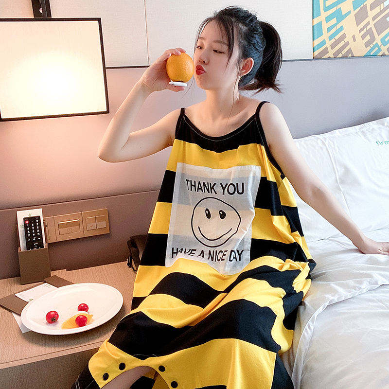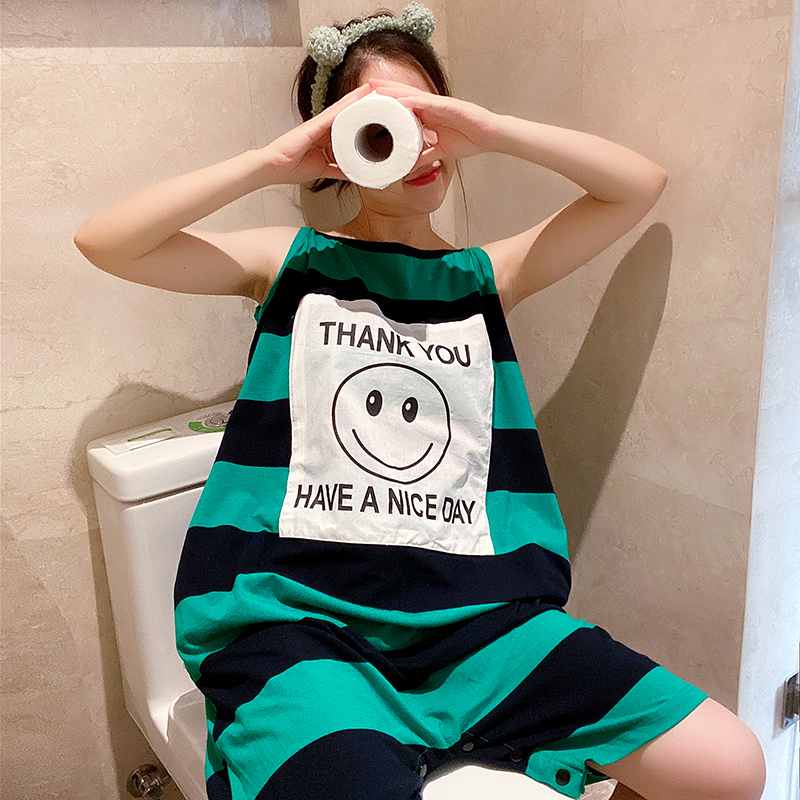 Smiley sling pajamas cute night dress women's summer loose cotton large size jumpsuit Pregnant women spring and autumn thin style home clothes