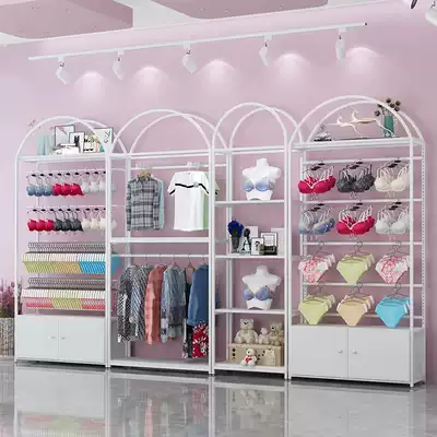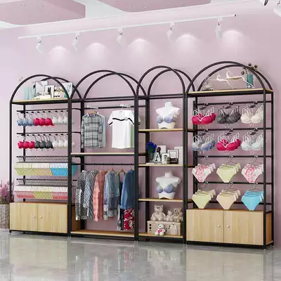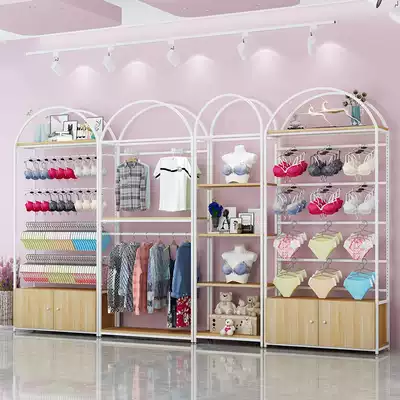 Lingerie display stand against the wall bra pajamas hanging side hanging underwear display gold light luxury underwear clothing store shelves