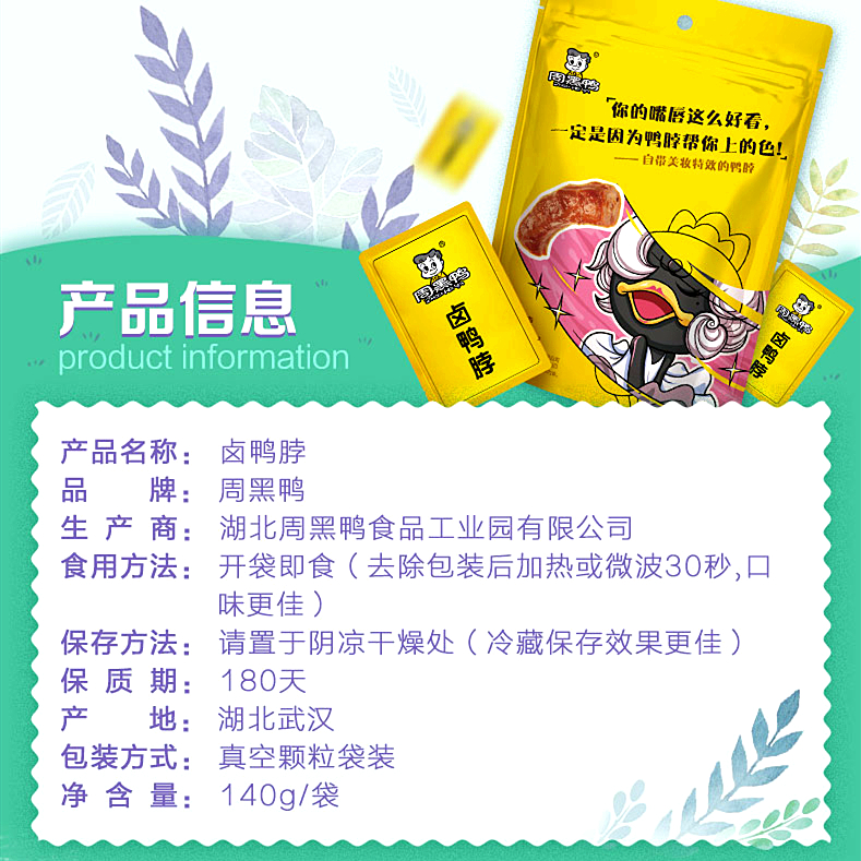 Zhou Hei Duck Neck Vacuum Small Package 140g Wuhan Duck Neck Hubei Specialty Spicy Snacks Cooked Food