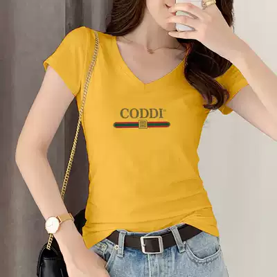 South Korea short sleeve t-shirt women Black slim cotton short 2021 new summer vneck coat outside wear bottoming Super fire