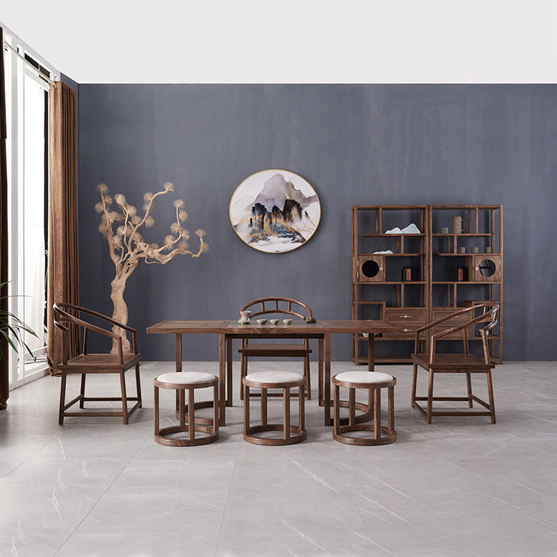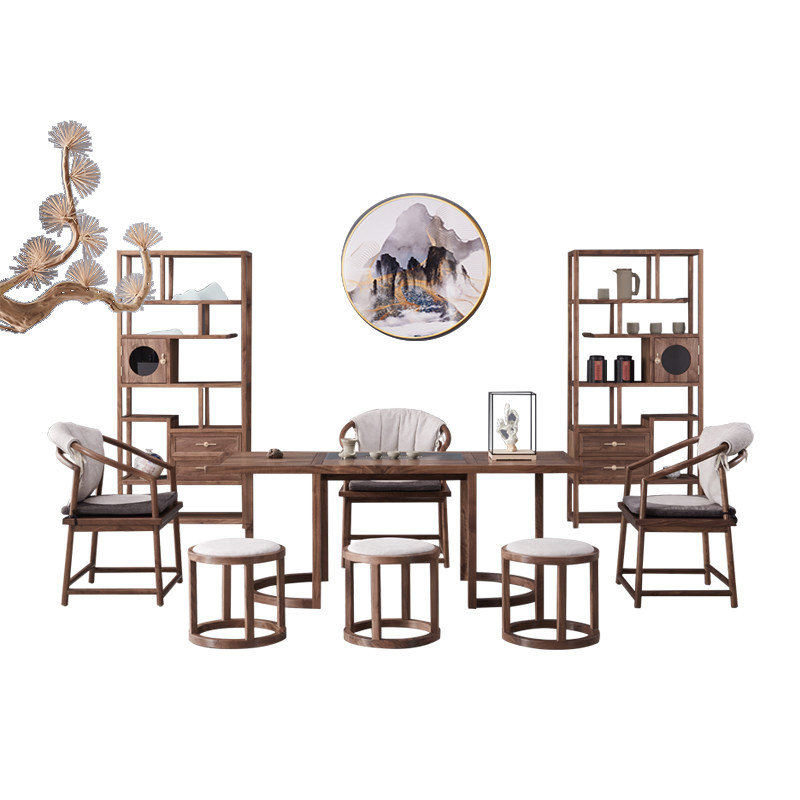 New Chinese style black walnut tea table and chair combination tea table solid wood Zen tea art table Kung Fu tea table table drinking tea room table - Taobao