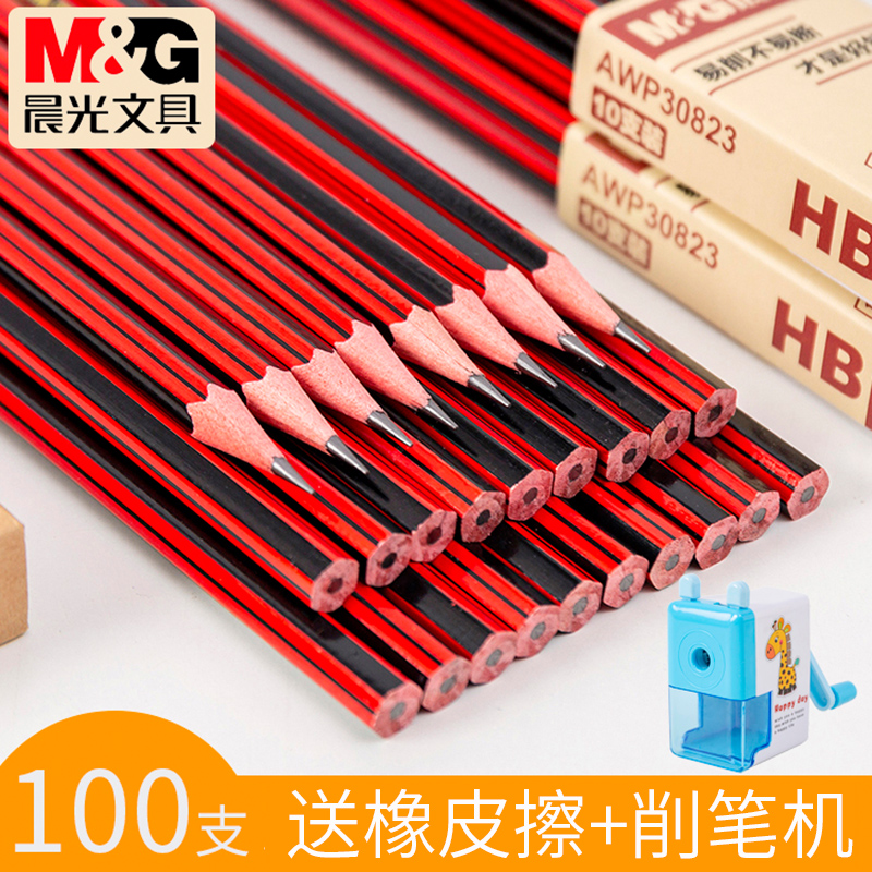 100 sets of morning light pencils primary school children's pencil lead-free hb pencil exam answer special 2b pencil with eraser head student kindergarten first grade 2 than pencil painting pen