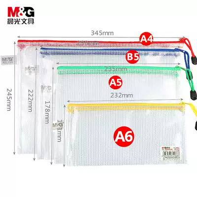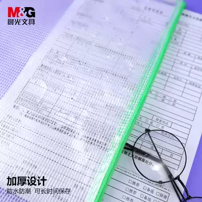 Chenguang stationery inclusive grid zipper bag A4 information bag A5 file bag transparent A6 waterproof file bag file storage 10 pack pull side belt financial bill bag