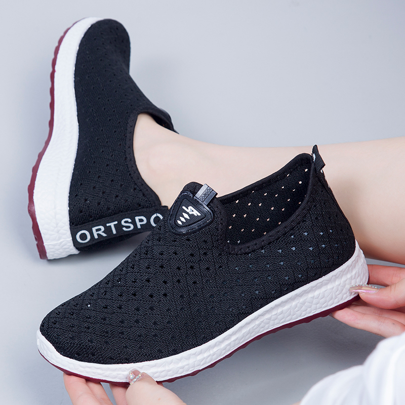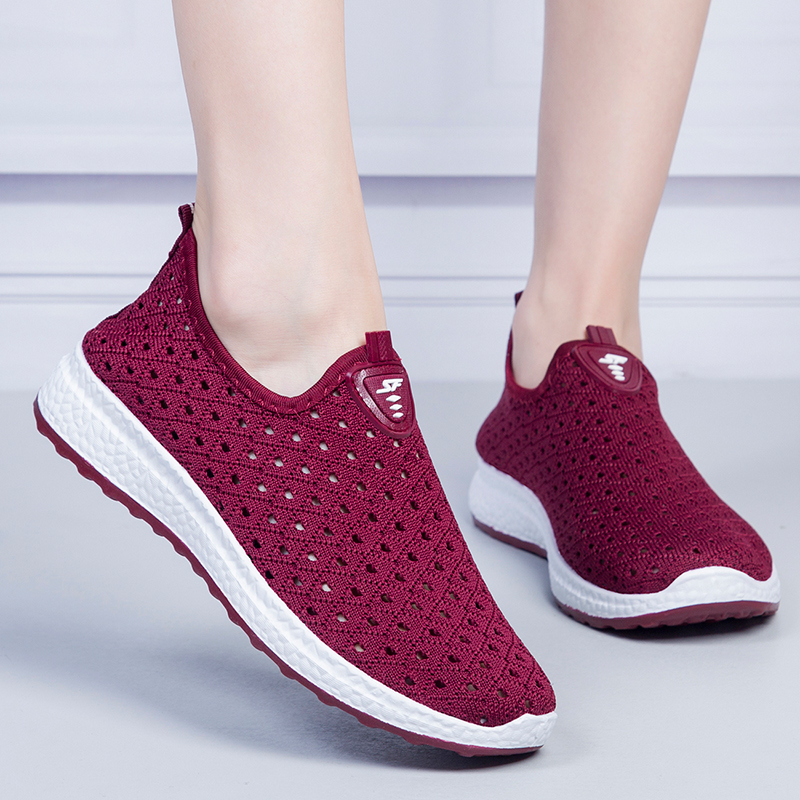 Summer Old Beijing Cloth Shoes Women's Tennis Shoes Hollowed-out Mesh Sneakers Mom Shoes Breathable Mesh Casual Flat-bottom Single Shoes