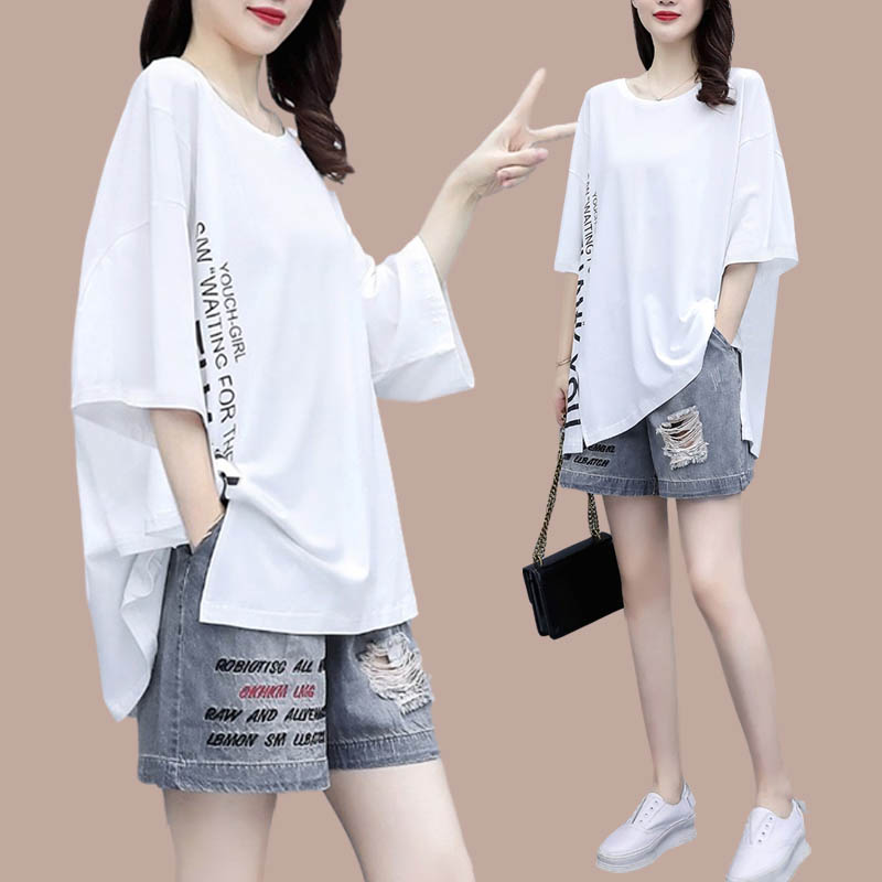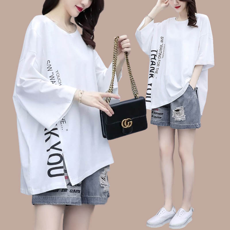 The relaxed casual suit women summer dress 2023 new fashion large gas T - shirt casual shorts two pieces of cowboy